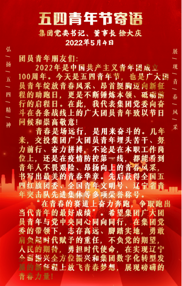 庆祝中国共产主义青年团成立100周年大会5月10日上午在北京人民大会堂隆重举行,习近平总书记在会上发表重要讲话时强调,青春孕育无限希望,青年创造美好明天。新时代的中国青年,生逢其时、重任在肩,施展才干的舞台无比广阔,实现梦想的前景无比光明。实现中国梦是一场历史接力赛,当代青年要在实现民族复兴的赛道上奋勇争先。共青团要牢牢把握培养社会主义建设者和接班人的根本任务,坚持为党育人、自觉担当尽责、心系广大青年、勇于自我革命,团结带领广大团员青年成长为有理想、敢担当、能吃苦、肯奋斗的新时代好青年,用青春的能动力和创造力激荡起民族复兴的澎湃春潮,用青春的智慧和汗水打拼出一个更加美好的中国。